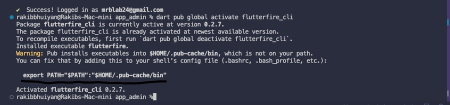 dart pub global activate flutterfire_cliRun the following command from your IDE terminal: